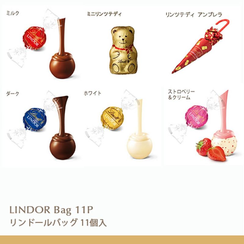 【内容】ミニリンツテディ10g2個、テディアンブレラ 1個、リンドール(ミルク 2個、ダーク 2個、ホワイト 2個、ストロベリー&クリーム 2個)