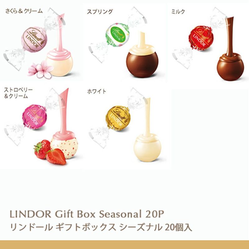 【内容】リンドール(さくら&クリーム 4個、スプリング 2個、ミルク 3個、ダーク 2個、ヘーゼルナッツ 2個、ホワイト 3個、ストロベリー&クリーム 2個、抹茶 2個)