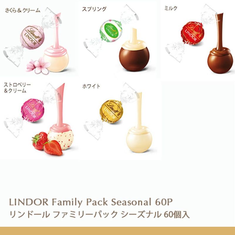 【内容】リンドール(さくら&クリーム 17個、スプリング 5個、ミルク 6個、ダーク 5個、ホワイト 6個、ストロベリー&クリーム 6個、キャラメル 5個、抹茶 5個、ブラッドオレンジ 5個)