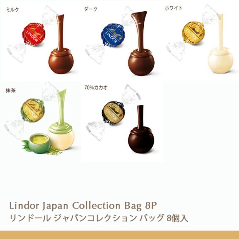 日本ならではのモチーフをデザインしたパッケージのJAPANコレクション。リンドールミルクや抹茶をはじめとした人気のフレーバーを5種8個詰め合わせたバッグです。