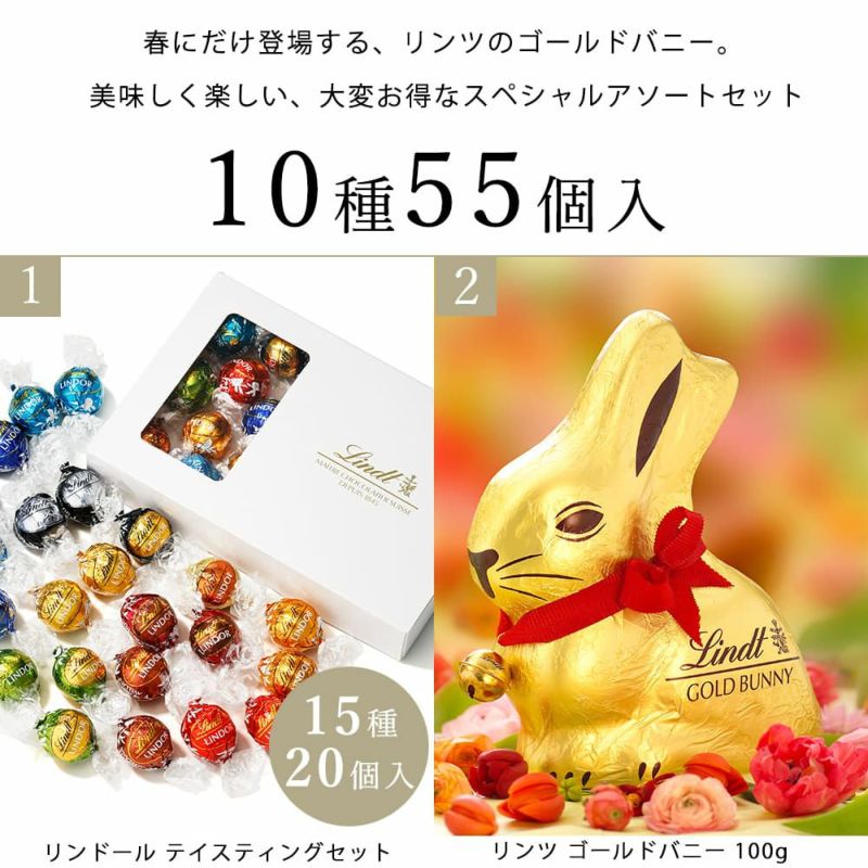 春にだけ登場するリンツのゴールドバニー、人気のリンドールなどがたっぷり入った、大変お得なアソート。