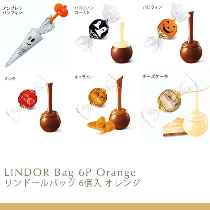オレンジのバッグには、毎年人気のアンブレラ型チョコレート「パンプキン」に加え、秋の味わいを楽しめるリンドールとして「キャラメル」「チーズケーキ」入り。