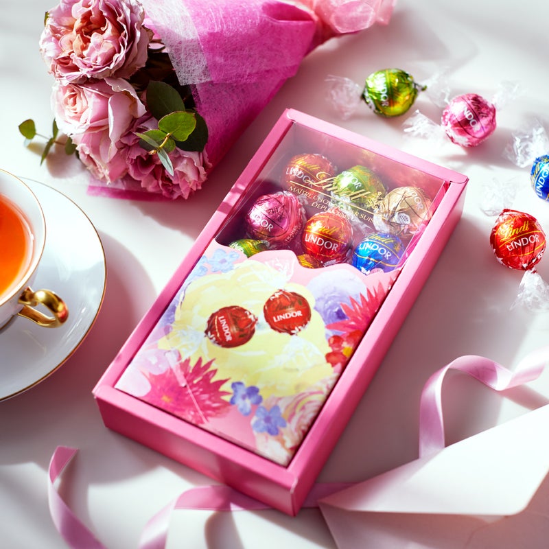 色とりどりのお花のようなリンドールをアソートした、カジュアルに贈りやすい母の日ギフトです。