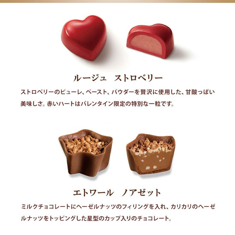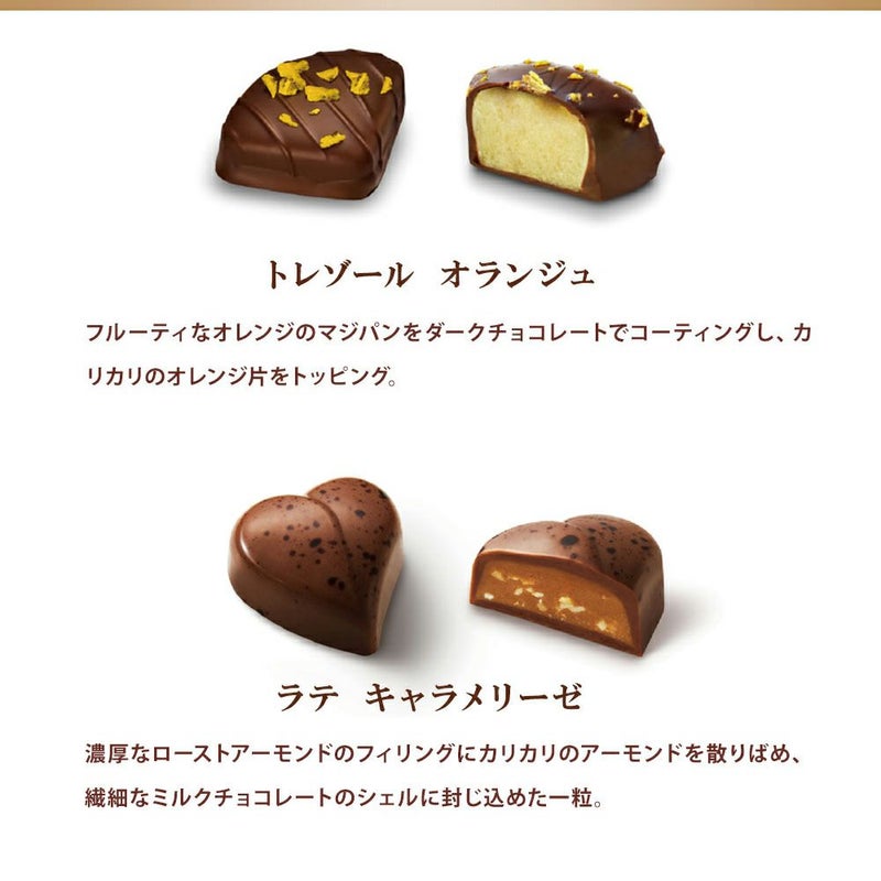 メートル・ショコラティエが388以上ものアイデアからレシピを採用し、カカオ豆の厳選から、最高の風味を引き出すためにナッツを自社でローストし、キャラメルやヌガーも伝統的な方法で製造した、ひと口サイズのチョコレート“プラリネ”を詰め合わせたギフトコレクションです。