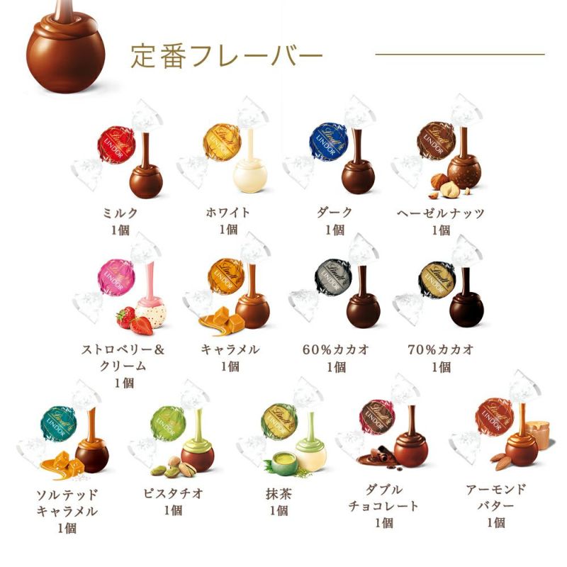 【内容】 リンドール(メープル、ゴースト、ハロウィン、ダーク 、ヘーゼルナッツ、ホワイト、ストロベリー&クリーム、70% Cacao、60% Cacao、アーモンドバター、抹茶、ピスタチオ、ソルテッドキャラメル、ダブルチョコレート 各1個)