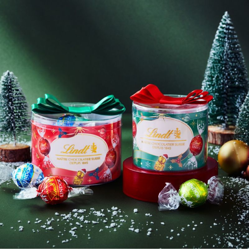 期間限定のサンタの形をしたミルクチョコレート、ミニサンタやリンドール スノーマンに加えて、リンドール ピスタチオやストロベリー&クリームなど心ときめくカラフルなラッパーのフレーバー入りです。