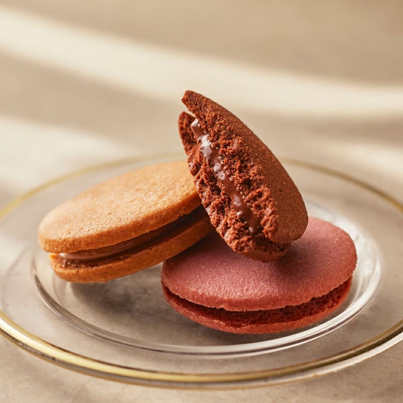 香ばしく焼き上げたサブレから、はみ出すほどに”たっぷりと贅沢に”リンツのチョコレートを使用した、こだわりのショコラサンド。サクッとした食感のあとに、口の中で濃厚なチョコレートがとろけ出す、チョコレートの楽しさを広げる焼き菓子です。