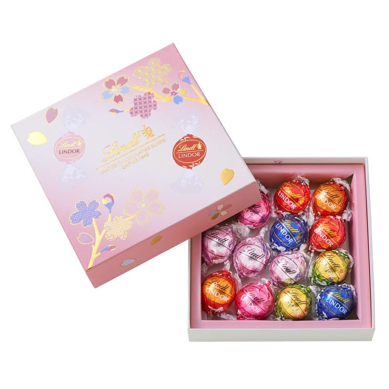 【内容】リンドール(さくら&クリーム 3個、ミルク 2個、ダーク 2個、ストロベリー 2個、抹茶 3個、ブラッドオレンジ 2個)