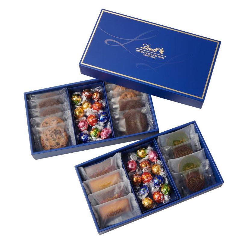バリエーション豊かなリンツのショコラ スウィーツの味わいを、贅沢にひと箱に詰めた、贈り物におすすめのアイテムです。