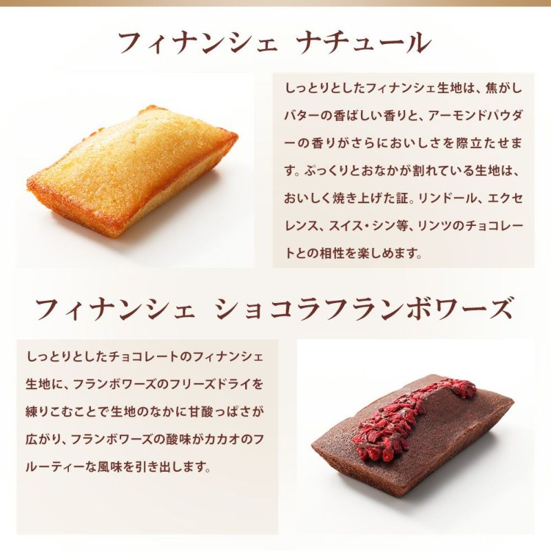 【内容】フィナンシェ ナチュール2個、フィナンシェ ショコラフランボワーズ2個、テヴェール2個、ガレットブルトンヌ2個、サブレショコラ4個、サブレナチュールショコラマカダミア6個、リンドールセット(リンドール 12個x2)