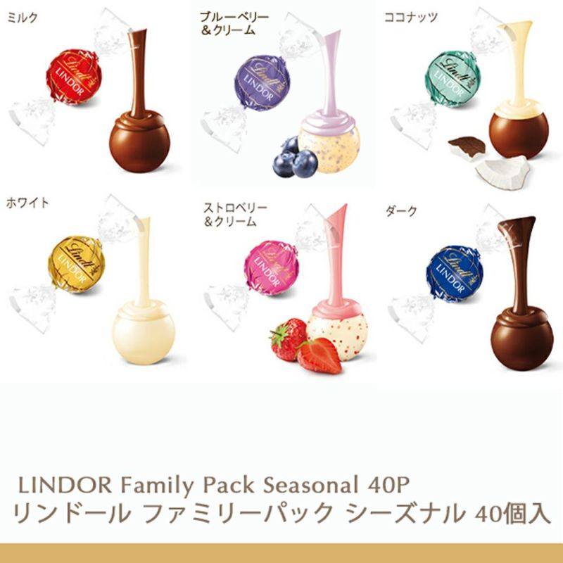 【内容】リンドール(ブルーベリー&クリーム 4個、ココナッツ 3個、ミルク 6個、ダーク 4個、ホワイト 5個、ストロベリー&クリーム 5個、ソルテッドキャラメル 4個、ダブルチョコレート 4個、ブラッドオレンジ 5個)