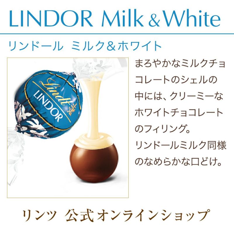 まろやかなミルクチョコレートのシェルの中に、クリーミーな舌触りのホワイトチョコレートフィリングが入っています。
